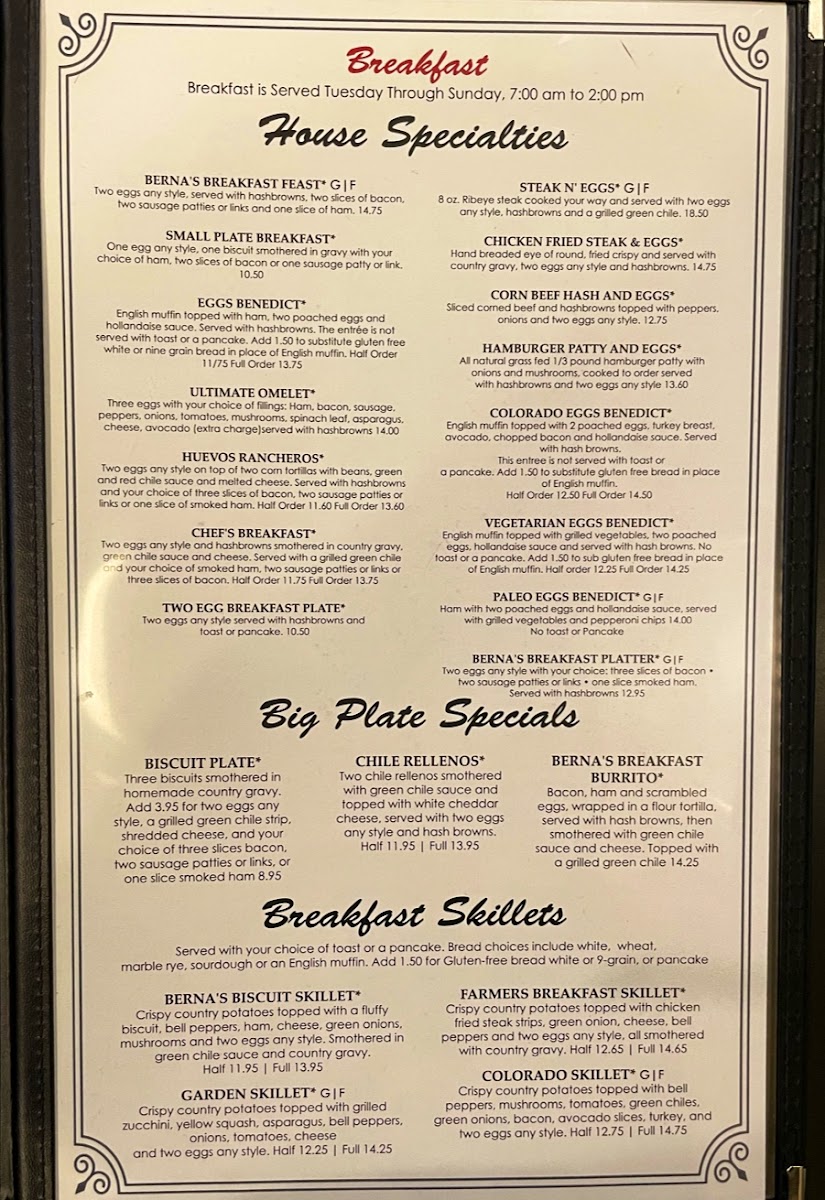 “ My friend and I who were on a road trip were heading to Black Canyon of the Gunnison National Park and looking for breakfast before heading out. After doing a search, we came upon Berna B’s and after reading reviews, decided to give this restaurant a try. I ordered the corned beef hash with eggs sunny side up. The food was made to order and was delicious. The servings were generous to the price making me leave full and happy. The restaurant is on the small side but the wait if you have to do so is worth it. Staff were friendly and helped with recommendations for our day. Definitely worth coming back to when I am back in Grand Junction. ”