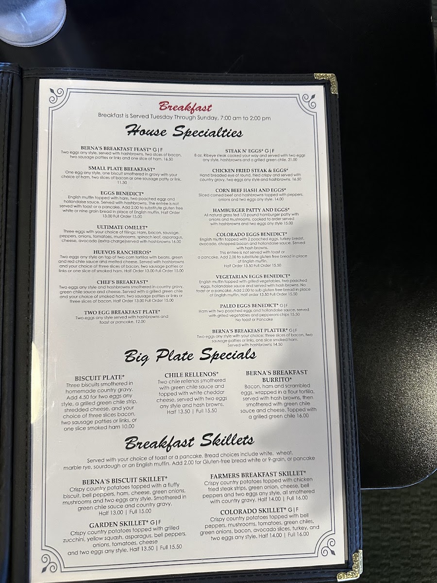 Nestled in Grand Junction, CO, Berna B's Classic Cuisine offers a delightful menu that celebrates comfort food with a home-cooked touch. Their salads and soups shine with options like the fresh House Garden Salad and the hearty Chef Salad, perfect for flavor seekers. The House Specialties are not to be missed, particularly the Paleo Eggs Benedict, boasting poached eggs and homemade hollandaise, served with grilled vegetables.